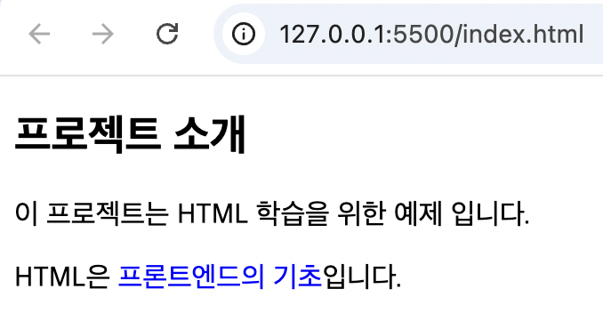 <p>이 프로젝트는 HTML 학습을 위한 예제 입니다.</p>