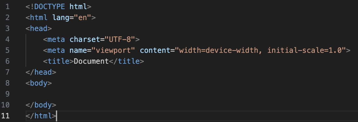 누른다면 다음 사진과 같이 기본 head와 body태그가 생성될 것입니다.