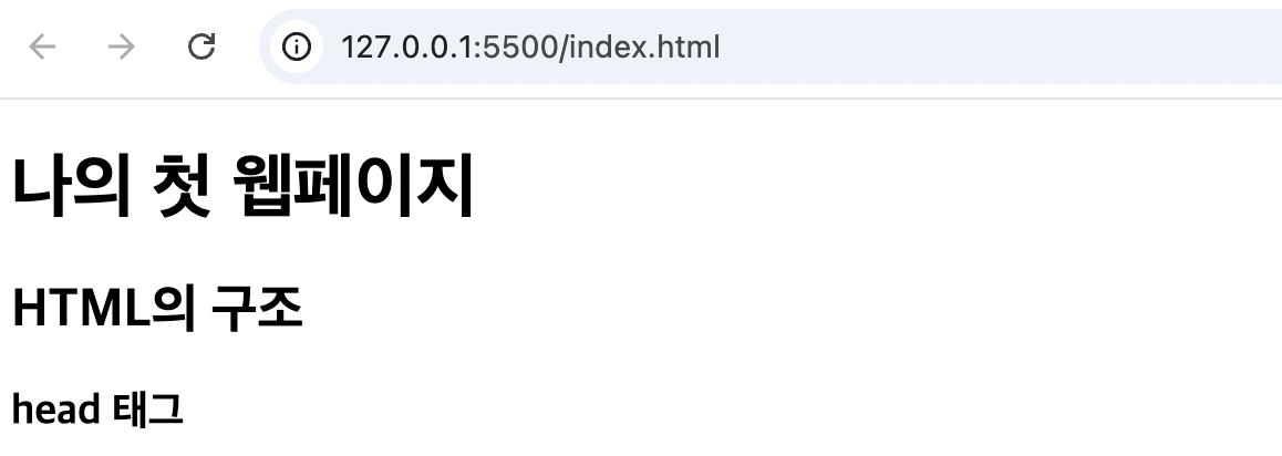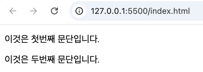 해당 코드를 live server 확장자를 통해서 실행해본다면 다음과 같은 화면이 출력되는 것을 볼 수 있습니다.