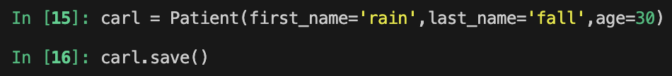 위 예시의 경우 carl이라는 Oject를 정의하고 .save()를 통해서 엔트리를 insert하는 과정이다.