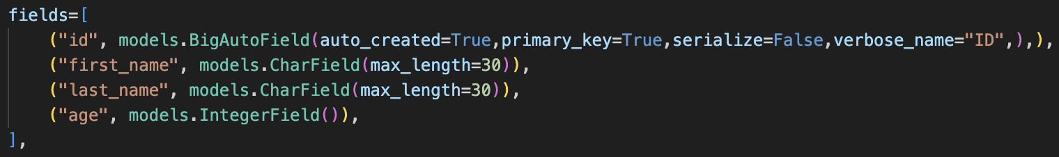 다음과 같이 해당 파일내에 필드에 대한 정보를 볼 수 있고, id가 primary_key로 설정된 것을 볼 수 있다. 이제 이 pk와 get()을 이용해서