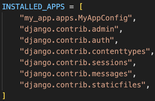 먼저 INSTALLED_APPS에서 django.contrib.staticfiles가 설치돼 있는지 확인하고 그렇지 않다면 추가해준다.